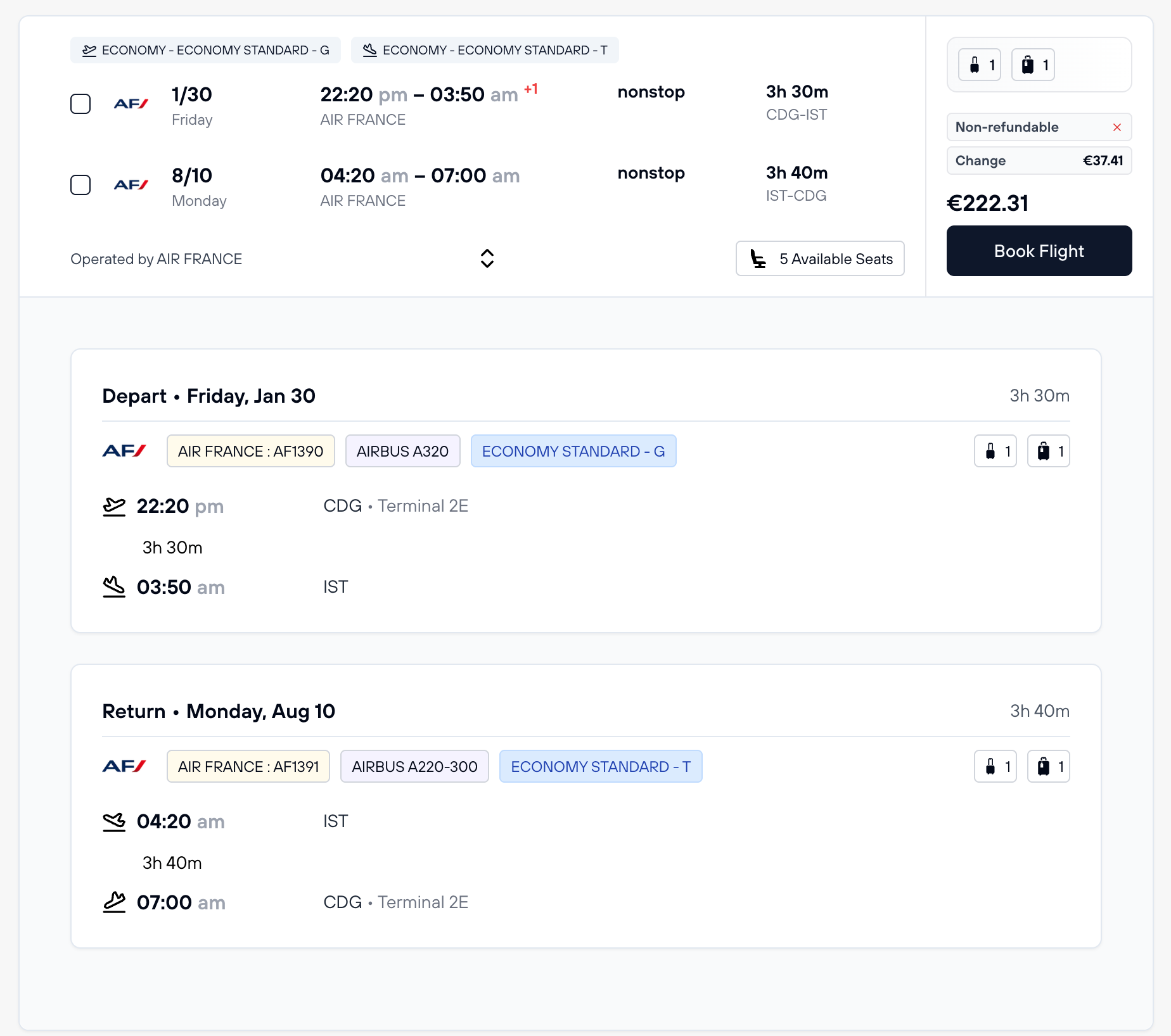 Select your preferred cabin class to match your comfort level and budget. By default, searches are set to Economy. Available cabin options include: